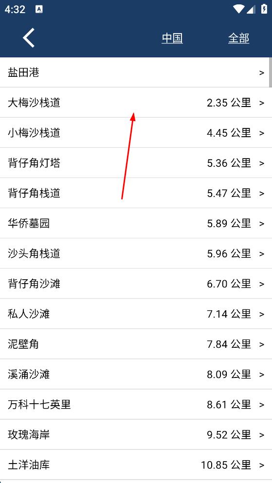 3、在地点列表中,选择想要查看潮汐的地点,比如大梅沙栈道。