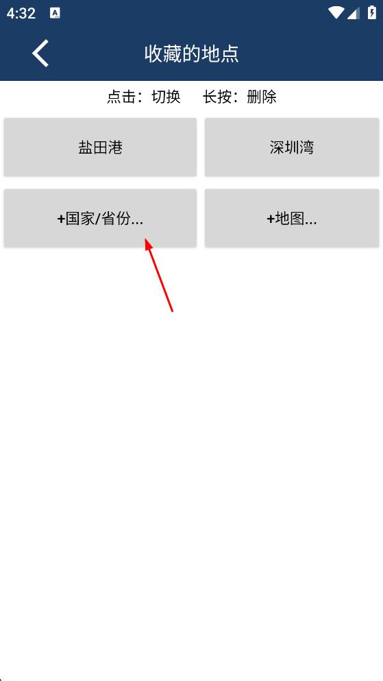 2、进入收藏的地点页面,点击“+国家/省份...”选项。