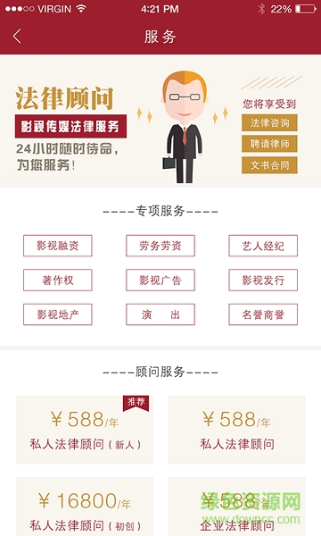 律影app是一款法律咨询平台,面对影视行业所开放,为客户提供专业的法律意见,提高沟通效率,帮助客户解答疑惑,让所有人都能得到法律的保护,合理维护自己的切身利益,有需要的用户欢迎来绿色资源网下载!