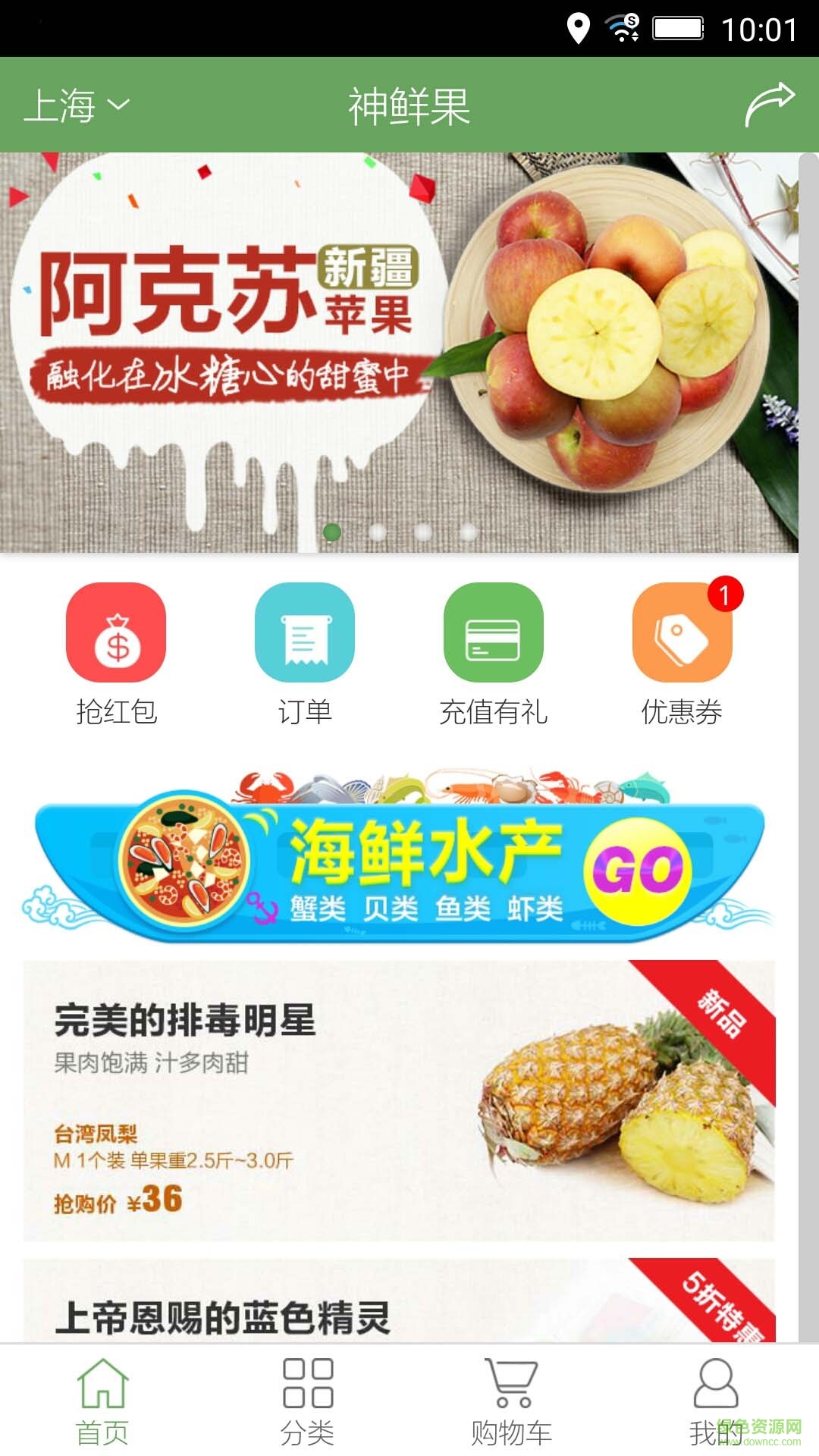 神鲜果app是一款购物软件,主要销商产品是新鲜的水果。这里的水果绝对新鲜,品种多样,进货渠道广,能够让你买到全世界的水果,喜欢的朋友欢迎来绿色资源网下载。