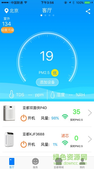 亚都云生活app是一款生活服务应用,集合了净化器,加湿器,除湿机等功能为一身,主要目的是为广大用户打造一个干净、健康的生活环境,是生活动不可缺少的手机软件,欢迎有需要的朋友在绿色资源网下载使用!