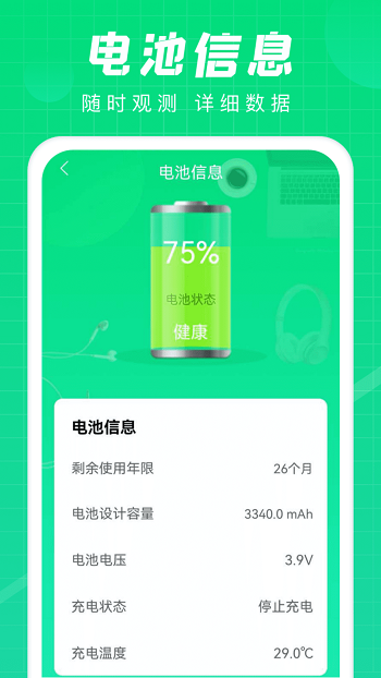 实时了解手机电池信息,避免电池损耗寿命降低。