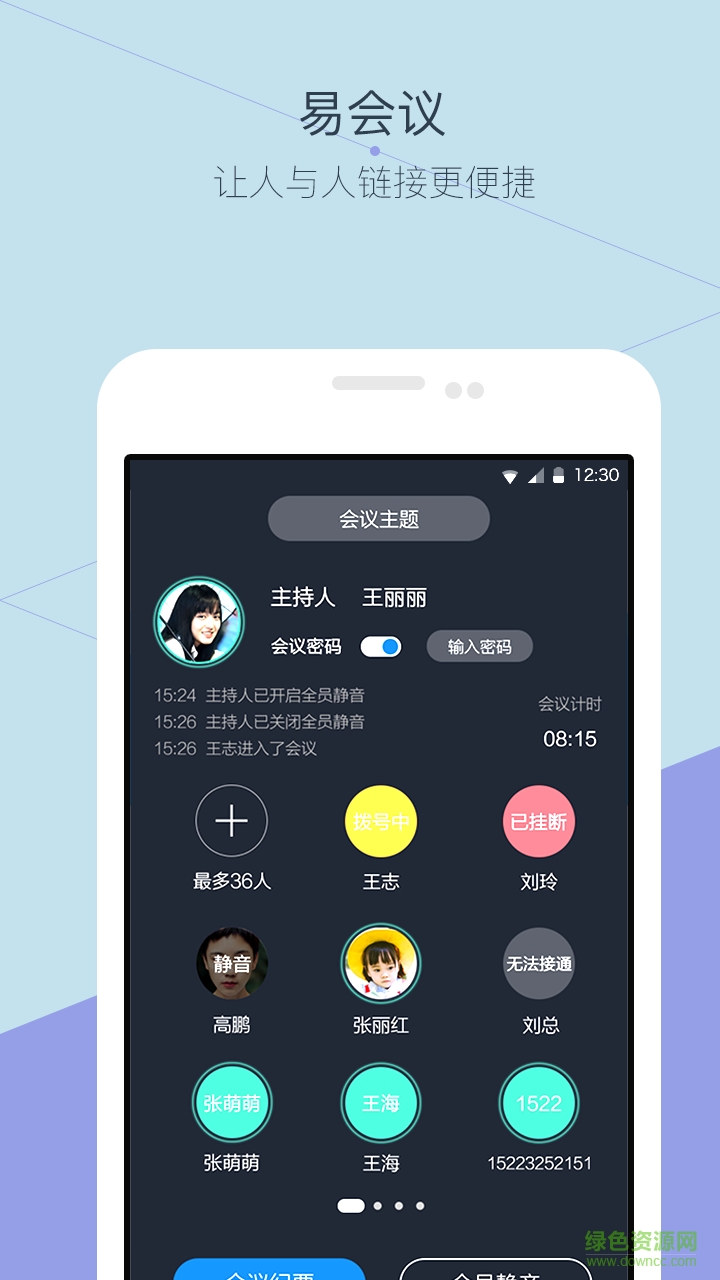 易会议手机版是一款商务办公应用,致力于为广大企业和个人用户提供一个便捷的移动办公平台,使用易会议app是可以方便的召开会议,让开会变得更简单,也提高了工作效率,是一款很实用的办公软件,欢迎有需要的朋友在绿色资源网下载。