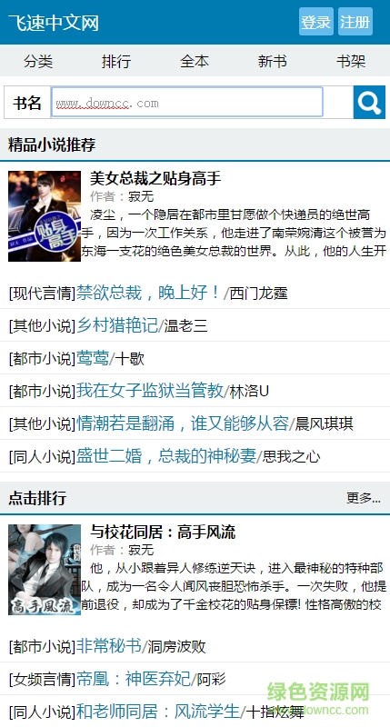飞速中文网手机阅读是一款看小说app,各种风格小说应有尽有,新书好书热书一网打尽,分类详细,支持在线搜索,轻松找到你想看的小说,喜爱的朋友赶快到绿色资源网下载体验吧!