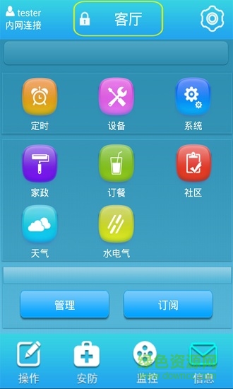 4.客户端划分为操作、安防、监控、信息四大功能区