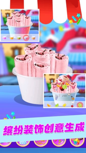 2、整个游戏中会有许多的可以自己装饰冰淇淋的玩法,玩家可以与众不同的冰淇淋。