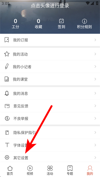2、在个人界面中,找到其它设置选项,点击进入其他设置页面。