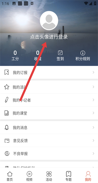 3、在进入到我的主页后,可以点击上方头像进行登录操作。
