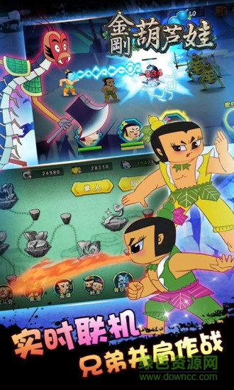 金刚葫芦娃手游是一款根据金典国产动漫《葫芦娃》改编而来的动作手游,再现最真实的童年记忆,复原移植了原著动画的剧情、人物,感兴趣的朋友赶紧来绿色资源网下载,与葫芦娃一起并肩作战,打败蛇精!