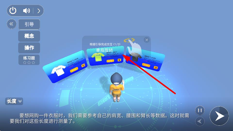 4、进入学习界面,按照引导完成交互操作,如进行单指旋转等操作学习知识。