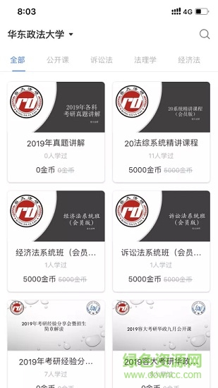 5.点击下方“课程”菜单栏,可看到公开课等各类课程页面。