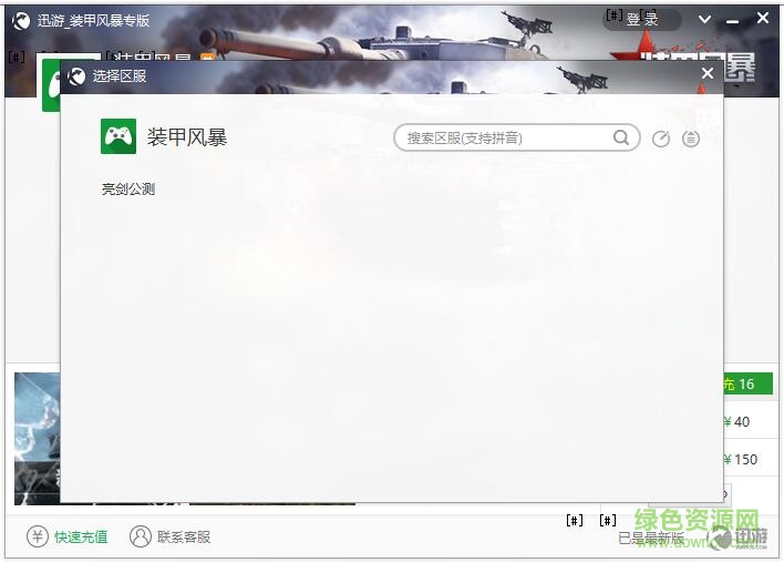 迅游装甲风暴专版是专为喜欢《装甲风暴》游戏玩家准备的游戏辅助工具,有了它你就不用再纠结网络延迟的问题了,软件操作简单,只需点击一个按键就能完成加速,纯傻瓜式操作,感兴趣的朋友赶紧来绿色资源网下载!