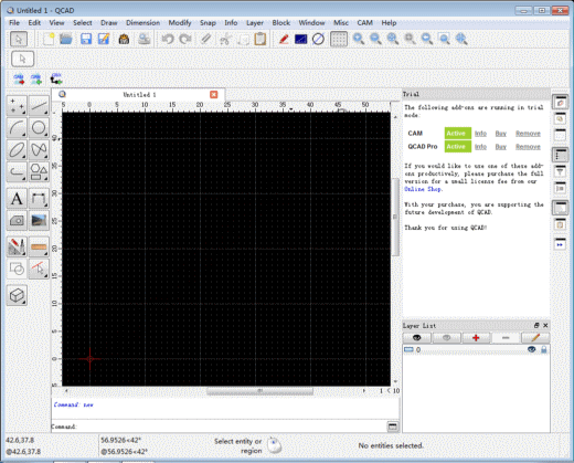 3.QCAD的硬件加速无论平滑效果与流畅度都令人完全满意。