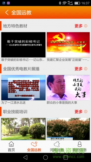 1.app内容包括时政新闻、全国远教信息、专题报道、通知公告、涉农信息、便民服务、阅读和学习管理等九大信息模块。