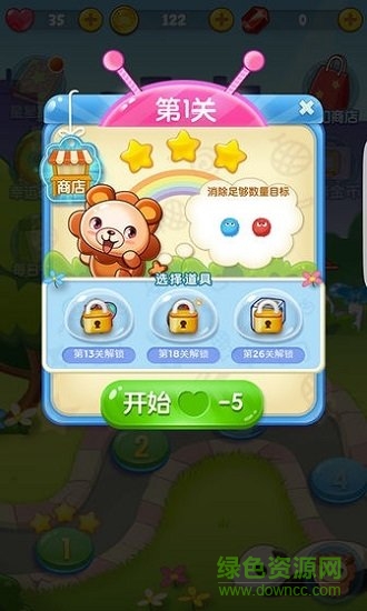 2、在每一关中都有指定的分数要求,你必须超过对应的分数才能解锁新的关卡,而且还有时间的限制