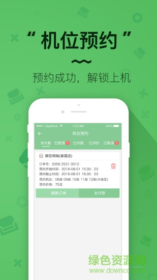 1.提供网咖座位预订、在线支付、锁机以及解锁供;
