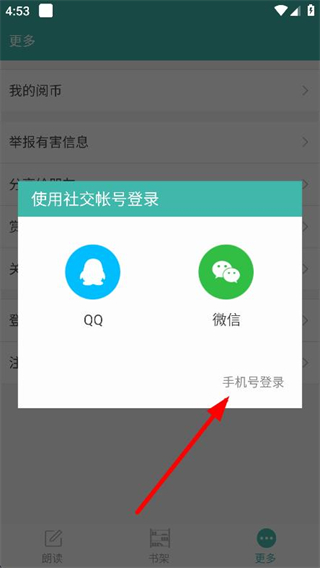 3、在弹出的登录方式选择中,点击下方的手机号登录。