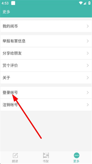 2、进入更多页面后,找到并点击上方的登录帐号选项。
