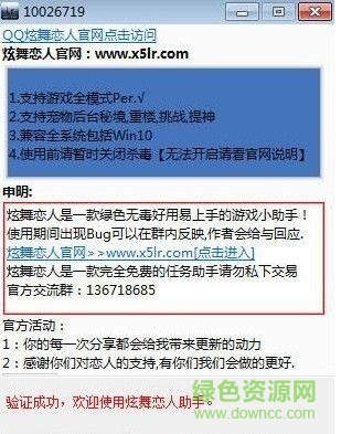 炫舞恋人助手是一款全能游戏辅助软件,性能稳定,玩家可以一直稳刷任务,不会掉线,是一款非常实用的炫舞辅助,喜欢的朋友一定不能错过,快动动你的手指,来绿色资源网下载体验吧!