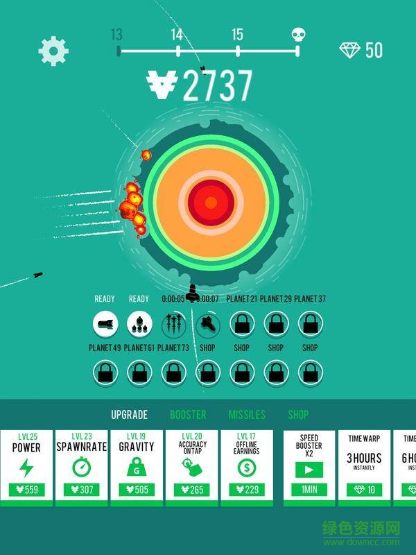 将行星摧毁后,你可以升级你的飞船和导弹向着其他星系进行攻击,还可以解锁全新的关卡!