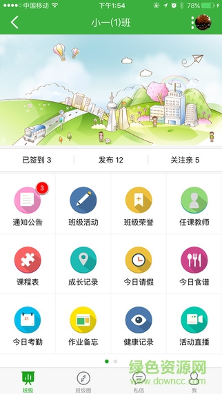 3.以班级为单位,呈现班级通知、班级活动、成长记录、班级圈等,使学校丰富多彩的活动及孩子在校的状态让家长有一个更深度的了解。