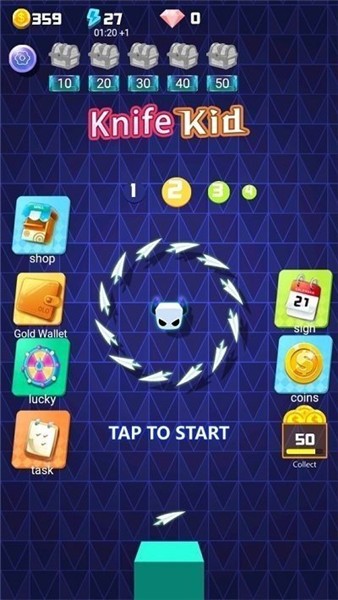游戏中玩家获得胜利需要在游戏里面斗智斗勇。同台竞技各种颜色的飞刀,斗智斗勇的去冒险,上演的飞刀表演非常的惊心动魄。飞刀形象得到改变,拿到超多福利需要完成不同的任务。