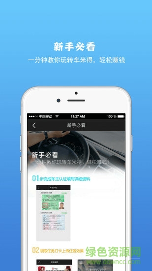 车米得app是一款让车主利用自己的爱车来赚钱的手机服务软件,用户每天可以根据软件提供的任务完成量来获取相应的酬劳,用户只需在微信公众号中参与认证即可加入,让你在开车的同时也能赚钱一笔不小的收入哦,感兴趣的朋友就来绿色资源网下载使用吧!
