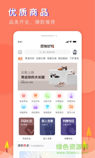 即刻好物app是一款优质的互联网购物商城,提供了海量商品信息,覆盖种类丰富,超低价格质量有保障,优惠购物更省钱,还可以通过分享轻松赚钱,强大团队等你来参与,欢迎来绿色资源网下载!