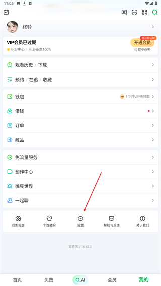 1、启动爱奇艺APP进入到首页内,点击底部导航栏会员的图标。