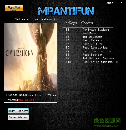 文明6十二项修改器激活之后你就可以开启无敌模式、快速科研、快速征兵、快速计划、无限核武器等多种强大的功能了,喜欢的朋友千万不要错过,赶紧来绿色资源网下载体验吧!