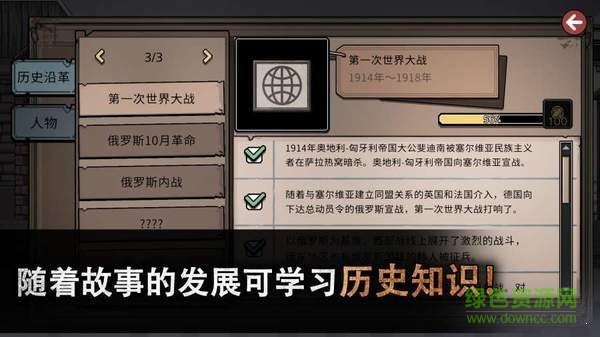 3、在体验的过程中玩家还能逐渐的学习到更多的真实历史知识,了解发生的更多事件;