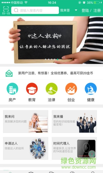 3.网站通过网络众多签约达人和机构,将用户的时间转化为交易的载体,进行“技能的有偿服务”和“需求有偿服务”的交易,建立海量的“问题和方法”库,并提供分享与下载。