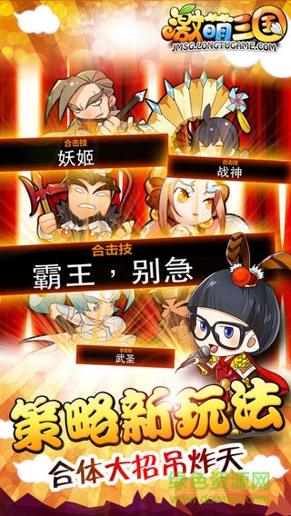 激萌三国是一款非常有趣味性的三国手游。游戏采用了Q萌画风设计,游戏剧情幽默搞笑,玩法简单有趣,深受广大玩家的喜爱,欢迎大家来绿色资源网下载试玩!