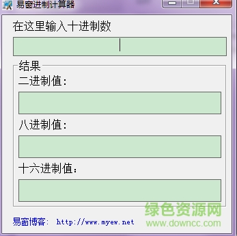 易窗进制计算器(十进制转二进制计算器)是一款专为pc用户打造的进制转换工具,通过该软件可以在任意八进制,2进制,10进制间进行转换哟,需要的朋友赶紧来绿色资源网下载吧
