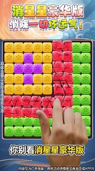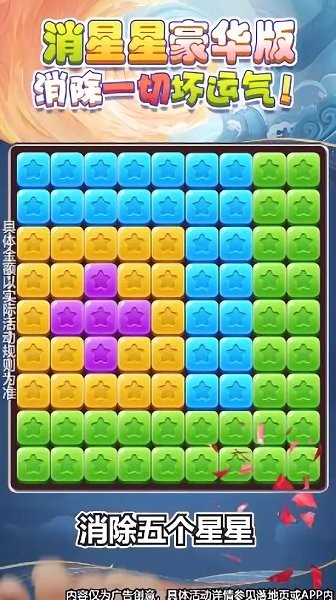 消星星豪华版游戏给玩家经典的消星星玩法乐趣,动态的消除特效非常的炫酷超燃,玩法简单上手轻松清新的画面场景玩起来非常的解压,还有丰富的奖励等待玩家的收集,快来下载试试吧!