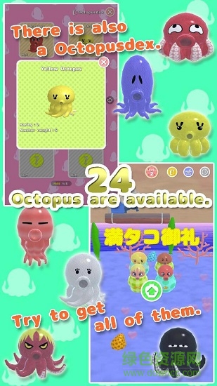 章鱼猎人是一款休闲类的模拟钓鱼游戏,在游戏中,你会看见各样各样的章鱼在水里游来游去,你所需要做的就是用章鱼壶来抓取更多的章鱼,放置章鱼壶后,章鱼看见自己喜欢的壶自后会自动的进入壶里,赚取更多金币可以后买更多道具,感兴趣的朋友就来绿色资源网下载安装吧
