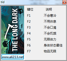 漫漫长夜修改器是针对该游戏玩家提供的一款辅助工具,通过该辅助玩家可以一键修改游戏的中不会寒冷、无限体力、无限物品等七项属性,界面简洁操作简单,用户只需输入相关热键即可,需要的朋友欢迎来绿色资源网下载!