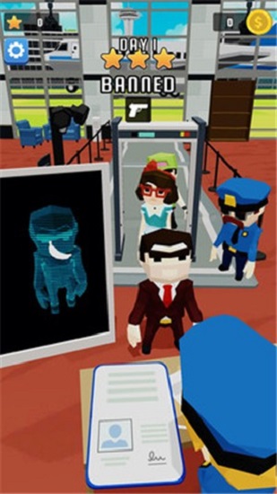 护照大亨中文版需要帮助顾客更快的通过安检,在安检机前,如果顾客携带武器是绝对不能放行的,要对自己的工作负责任,在完成任务之后都是会有奖金的,要以最高的效率来帮助顾客哦,这里还可以对自己的设备进行升级,这样就能够探测出更多有问题的武器了。