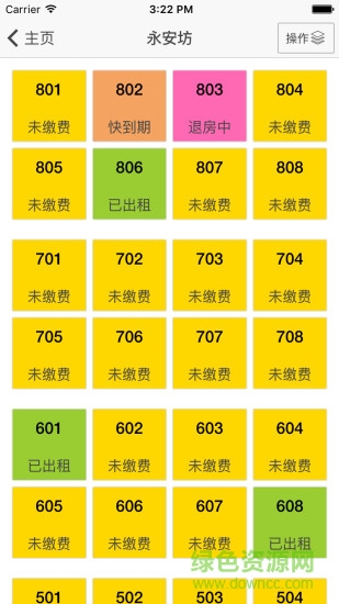 5.房间主页面中,区分未缴费,即将到期,退房中状态,并用不同颜色标记