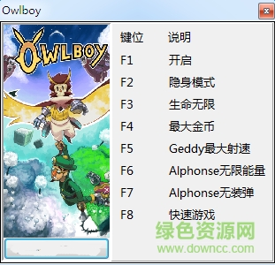 猫头鹰男孩七项修改器是一款为你带来极致游戏体验的辅助工具,它带来的生命无限、隐身、快速游戏等功能让你能最轻松的进行游戏,喜欢的朋友欢迎来绿色资源网下载!