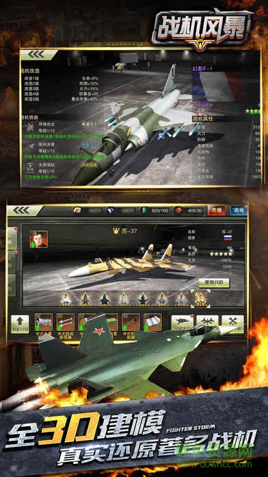 《战机风暴》采用最新Unity 3D引擎,使用全3D高精建模及先进模型处理技术,忠实还原全球传奇战机,支持360°全景自由旋转,随时体验指间战机展览。