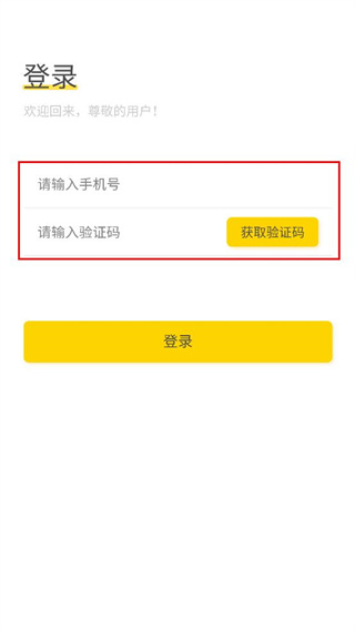 3、在登录界面的手机号输入框填写号码,点击获取验证码后填入对应内容。