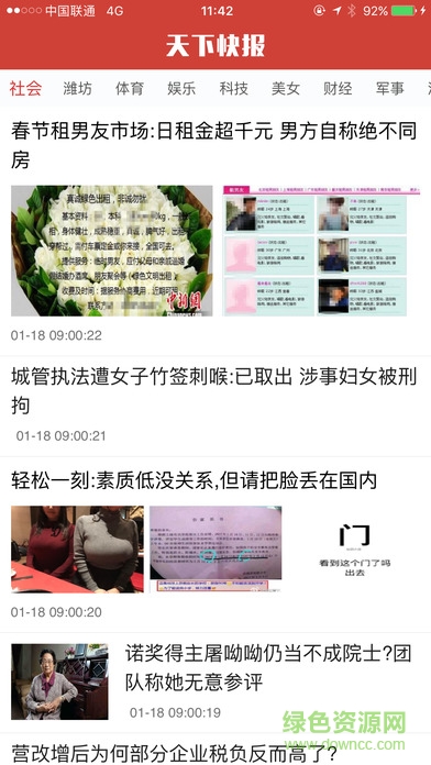 天下快报app是一款专注于手机看新闻的软件,通过这款软件用户可以知道每天都在发生什么事,知道大家都在关注什么事,二十四小时不断更新最新的时事新闻,让大家看到最新的新闻报道,喜欢看新闻的朋友们可以来绿色资源网下载此款软件。