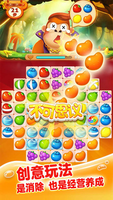 可爱萌趣小动物,高耸入云的欢乐树,看一眼就让人吞口水的诱人水果,这是完美画质下支撑的的消除世界。