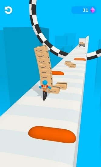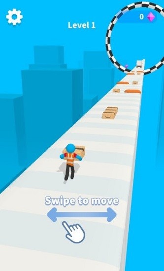 一款考验手速灵活性的跑酷闯关游戏,现在你是一名快递员,需要拾取地上的快件包裹,尽量一次性拾取更多的包裹,并来到终点的货车前!