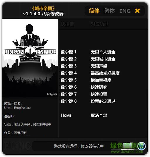 城市帝国修改器是针对同名pc游戏玩家提供的一款辅助工具,通过该辅助玩家可以自由修改游戏中的无限无限声望、快速投票、快速研究等属性,合理的修改游戏属性可以帮助玩家更轻松体验游戏乐趣,需要的朋友欢迎来绿色资源网下载!