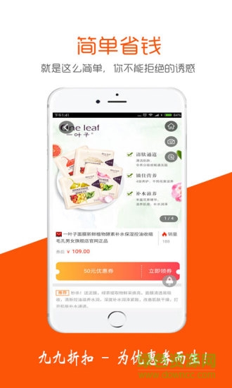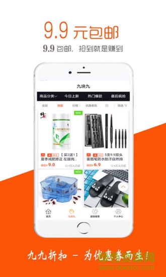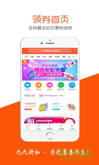 九九折扣,是一款能让你在网购当中省钱app, 一款基于分享优惠券的移动导购平台App。在某宝、某多多下单平均省50%,分享即赚佣金。做平台代言人更有丰厚奖励等着您!