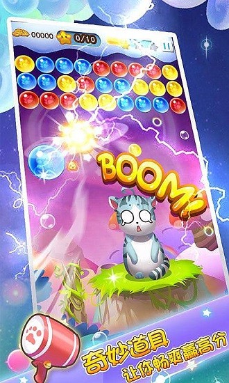 《泡泡龙猫咪消消乐》是一款泡泡龙玩法的休闲游戏。还记得年少时的快乐吗?红白机让两代人度过了快乐的的时光,泡泡龙也因玩法经典而著称多年。《泡泡龙猫咪消消乐》创新作品超萌来袭,欢快的旋律,新颖的玩法,和您共同追忆那美好的快乐童年。上手容易,画面清新。主角萌萌哒,场景新奇。道具繁多,功能强大。关卡新颖,奖励雄厚。超强粘度,爱不释手。