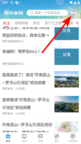 1、打开罗浮新闻APP,点击右上角的头像,进入个人页面。