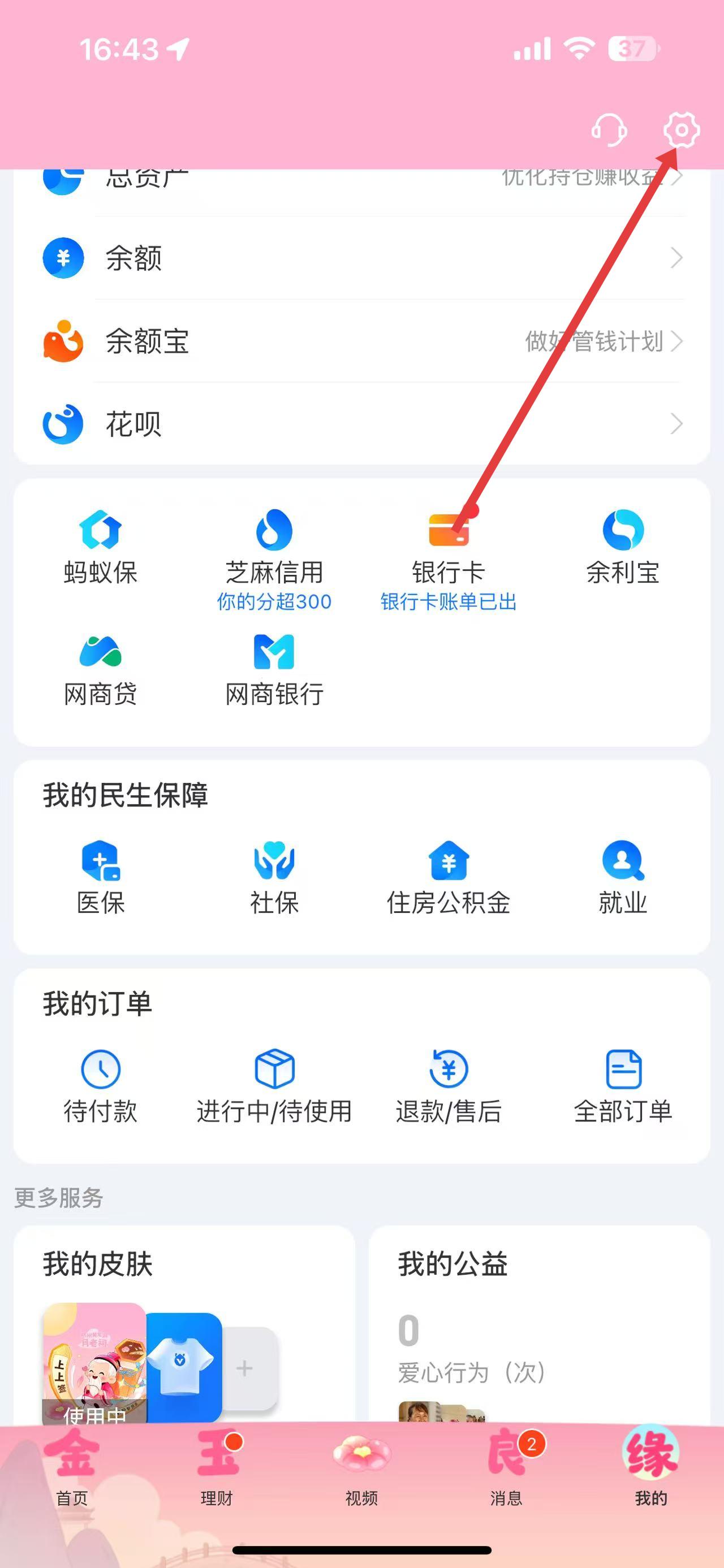 2、在个人页面中,点击右上角的设置图标进入设置界面。